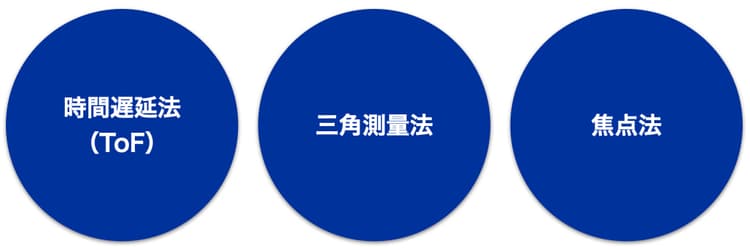 以下に、計測手法の代表的な分類による「時間遅延法」「三角測量法」「焦点法」についてそれぞれご紹介します。