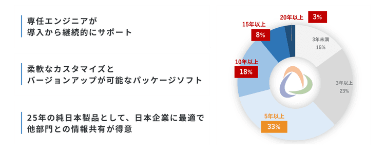 戦略箱は、25年の実績を持つ日本製品で、専任エンジニアが日本企業向けに手厚いサポートを提供します。これらの特長から、累計20000ユーザーに導入され、長期にわたって信頼され続けています。