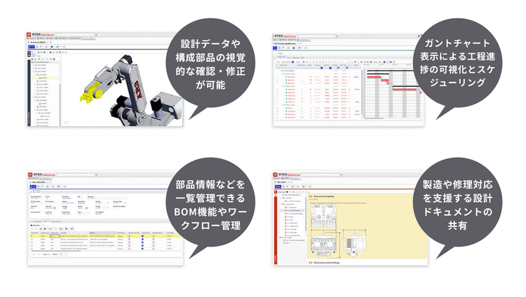 Aras Innovatorは、図面・3Dモデル・工程計画・部品管理・タスク管理・文書管理・品質管理といったPLMとしての機能を統合的に提供しています。