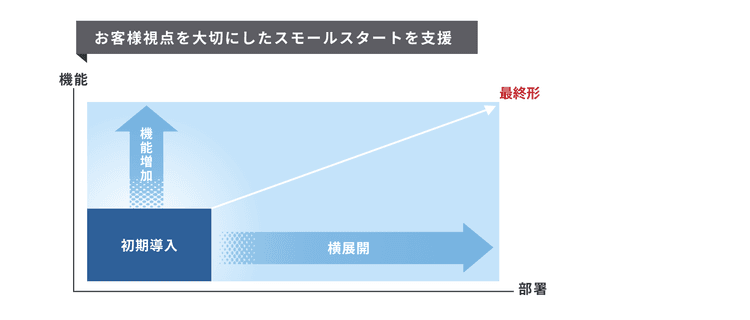 ただスモールスタートするだけでなく、最終形(目指す姿)を描き、ゴールイメージを合意しながら進めていくことで先を見据えた部分最適を実現することができます。