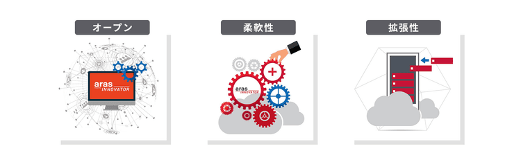 Aras Innovatorは、海外製PLM製品に匹敵する豊富な標準機能を備えながら、一般的な日本製PLMよりも柔軟なカスタマイズ性を兼ね備えています。