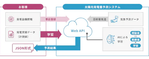 日射量の予測データから算出される発電理論値と、実際の発電実績データを学習することで、高精度の太陽光発電予測を実現します。