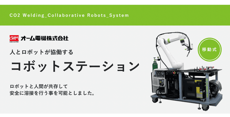| 溶接ロボット「コボットステーション」 | レイアウト変更が手軽で、簡単な操作で溶接の自動化が出来る溶接協働ロボットです。 |