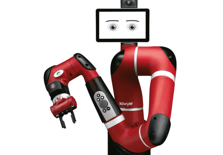 | 協働ロボット「Sawyer」 | 「人によりそう協働ロボット」として、7軸の関節で人間のように柔軟・パワフル・自由自在に現場を補い、安全に人をサポートします。 |