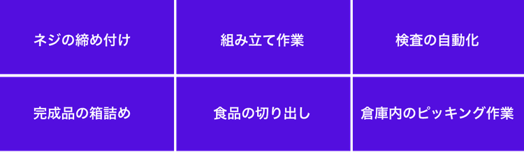 協働ロボットを活用することで、様々な業務を人に代わってロボットに行わせることができます。代表的な活用事例を以下にご紹介します。