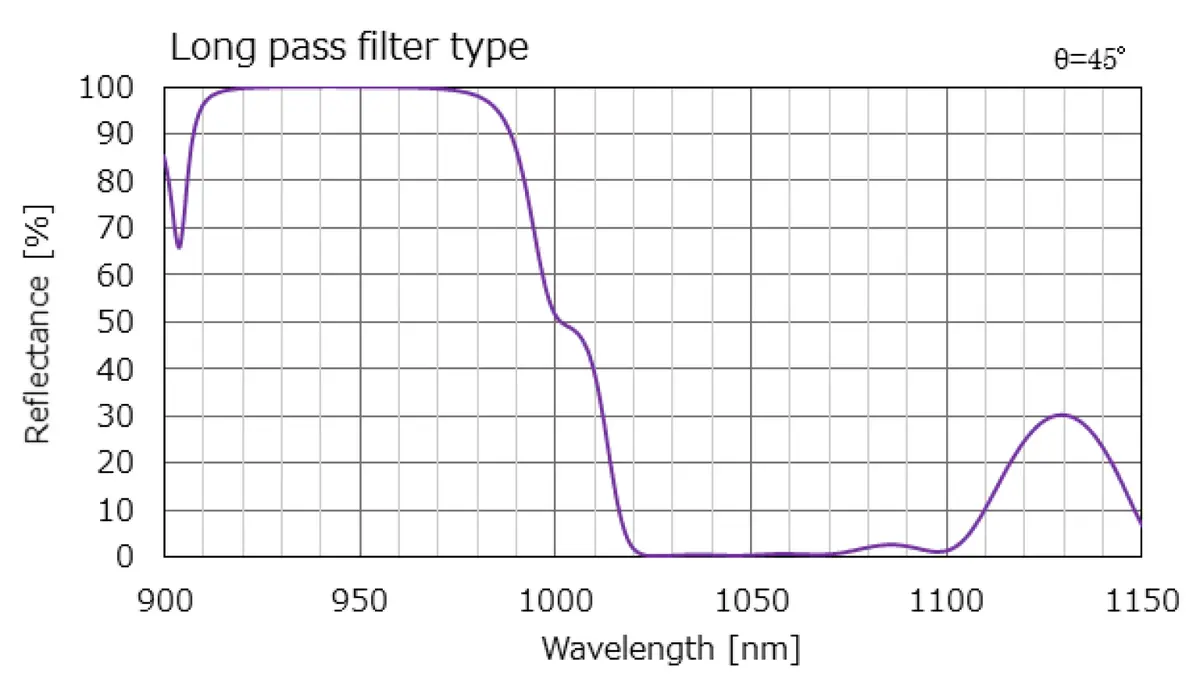参照光となる950nmの波長を反射し、主波長の1064nmのレーザー光源波長を高透過させたものです。