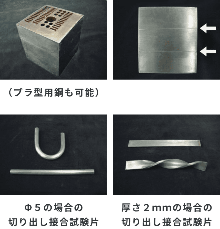 材料的に溶融溶接が困難な金属や、異なる種類の金属同士を接合することができます。
