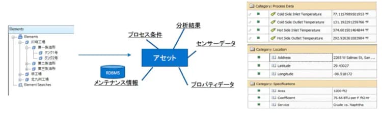 特別なプログラミングを必要とせず、アセット(設備)を中心としてセンサーデータを紐付け、データベースに格納します。アセットテンプレートの利用により、同タイプの設備に同じ属性情報を自動付与可能です。