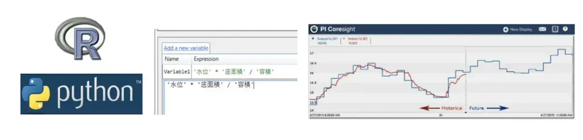 また、AIや機械学習など、高度な分析ツールが導いた数学モデルにセンサーデータを適用し、得られた予測値(未来データ)をリアルタイムデータと同様に取り扱う事ができます。