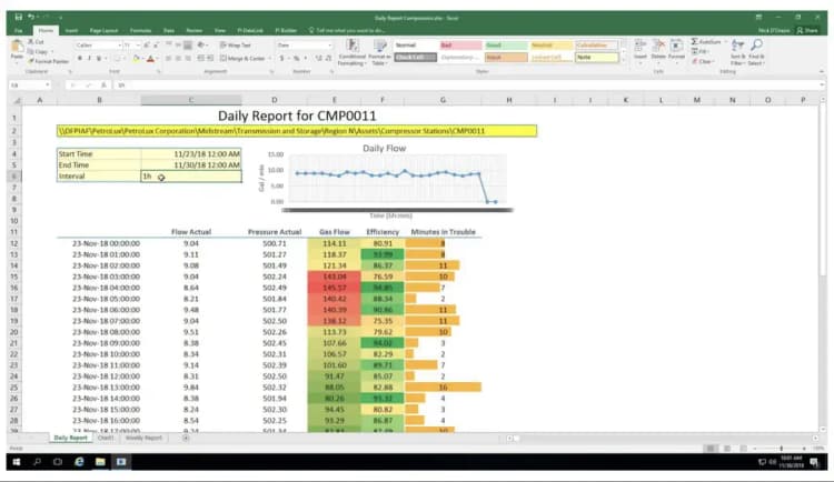 「PI DataLink」ではExcelのアドインとして、PI Systemの蓄積データをExcelへ取込み、Excelの関数を使用したデータ処理が可能です。業務レポートの作成等の利用において多く活用されています。