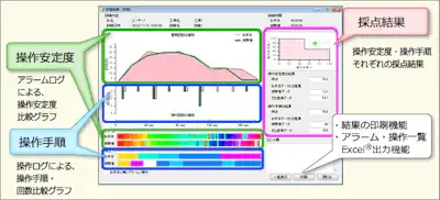 PROMET(プロメット) | PROMETとは、大阪ガス株式会社と富山大学の共同研究成果(特許取得済)を元に作成したソフトウェアです。運転訓練シミュレータ(OTS)等からの運転情報(操作・アラームログ)を用いて、オペレーターの操作を採点、運転習熟度を定量的に評価します。 ![]() PROMETの特徴