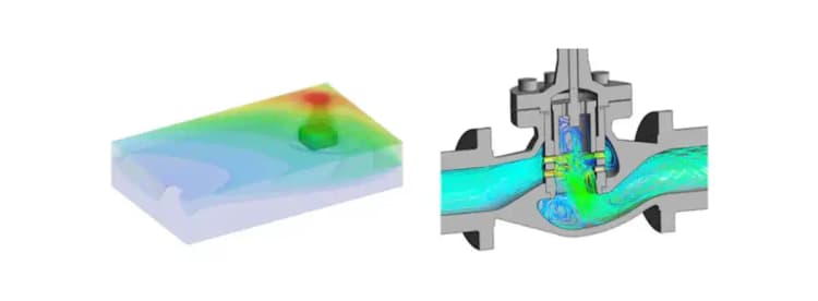 製造現場おける力や振動、流れ、熱といった様々な現象を、物理学や工学の基礎方程式を用いてシミュレーションを行います。目では見ることのできない応力(ひずみ)、流線、熱流束などの物理量を可視化することで、現象理解をサポートします。