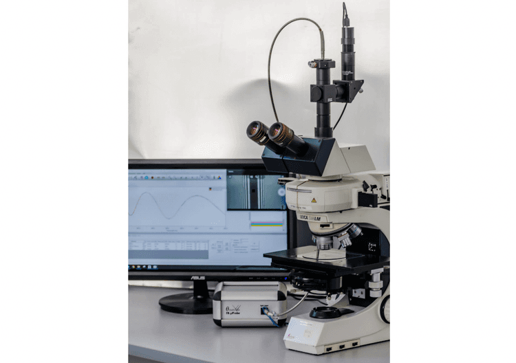 発光ダイオード、フォトダイオードアレイなど、エッチング処理後の膜厚測定に顕微鏡の対物レンズを使用することで測定スポット径を小さくした膜厚測定が可能です。モニターを使って位置指定で測定することができるため、極小エリアでもストレスのない測定を実現できます。
