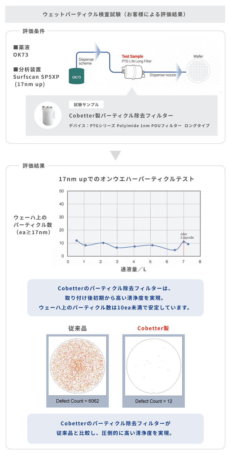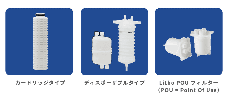 Cobetterでは、ウエハープロセスで使用されるパーティクル除去を目的とした様々なアプリケーションに対応するフィルターラインナップを取り揃えています。