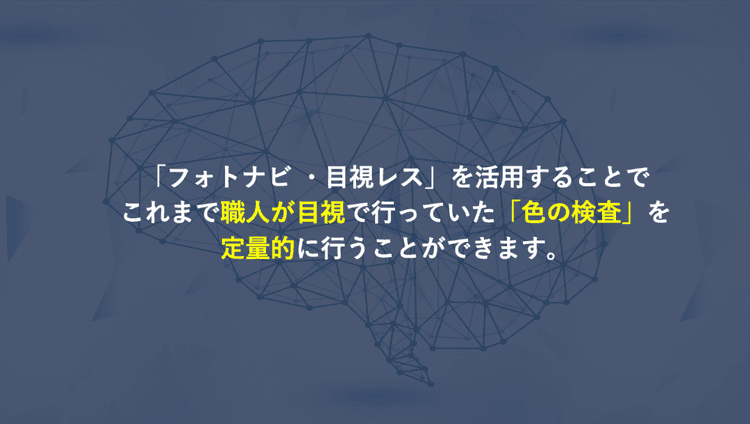 フォージビジョンのフォトナビ ・目視レスを活用することで、これまで職人が目視で行っていた「色の検査」を定量的に行うことができます。