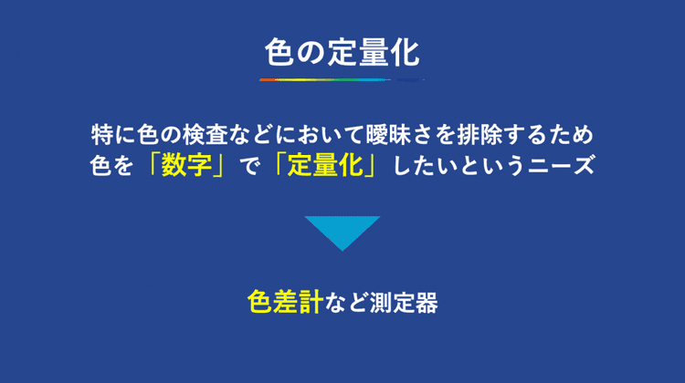 特に「色の検査」などにおいて曖昧さを排除するため色を「数字」で「定量化」したいというニーズがあります。そのため色差計などの色の測定器が開発されています。