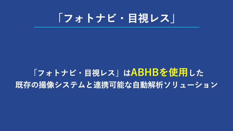 ABHBを使用した、既存の撮像システムと連携可能な自動解析ソリューションが「フォトナビ・目視レス」です。