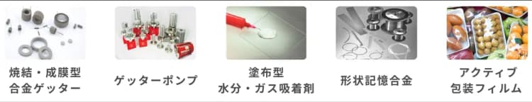 このページでは、乾燥空気・窒素・希ガス置換パッケージ向けゲッター材の3タイプ、及び真空封止パッケージ向けゲッター材の2タイプをご紹介します。