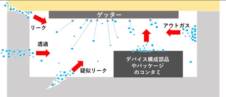 従来の真空封止のセンサーパッケージだけではなく、内部を乾燥空気・窒素・希ガス等で置換したパッケージにおいても、水分や特定のガス(水素や揮発性有機化合物)を取り除く重要性が高まっています。