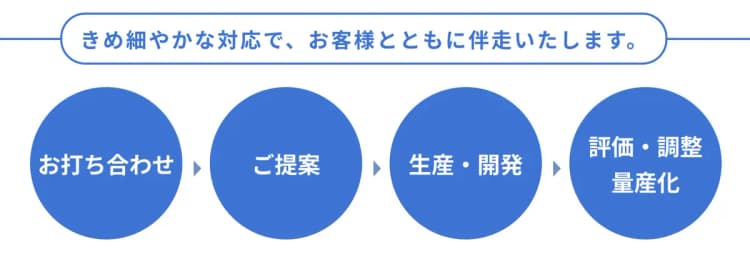 お客様のご要望に誠実に耳を傾け、ニーズに的確にお応えできる材料組成のご提案、開発を行います。 ガラスの持つ焼結、封止、接着、耐熱等の性能を、お客様の用途に合わせて最適化した製品・技術をご提案いたします。独自に積み重ねてきた技術とノウハウで、製造のみならず、開発においても、きめ細やかなカスタマイズ対応で、お客様のニーズをカタチにいたします。