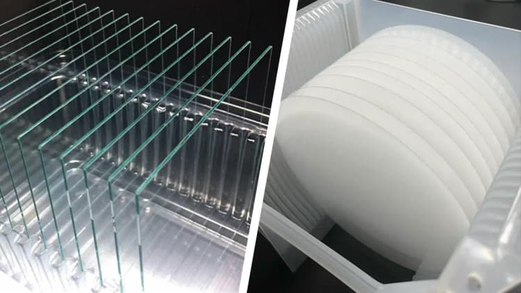 切断・面取り、クリーンルーム直結の洗浄機での仕上げ洗浄を行えますので、材料評価用・試験用に最適です。