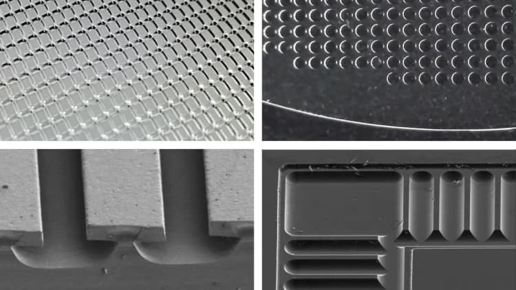 現在ではICの3Dパッケージ化や高速通信に対応すべく、これまで培ってきたエッチング技術にレーザー加工も加え、ガラスの微細貫通孔加工(TGV加工)、精密堀込み加工、UTG(Ultra Thin Glass)加工で最先端分野での御客様の開発のお手伝いをさせて頂いております。