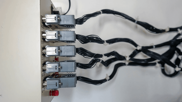 一瞬の断線も見逃さないように、システムを通して確認する重要な検査です。