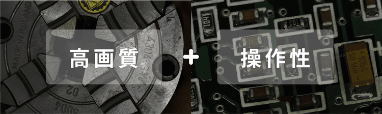 SKM-V300B-FHDは、x10~x60までの倍率をカバーする可変倍率式のマイクロスコープです。フルハイビジョンで高画質な映像を出力、プログレッシブ走査と60fpsの滑らかな動画を提供します。低倍率でも細部がよく見えるため、バリ / キズ / 異物混入の目視外観検査に最適な工業用マイクロスコープの決定版です。