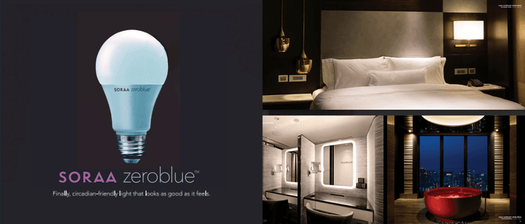 SORAA zeroblue™を使用する空間では、ブルーライトをカットすることで「1日の終わりの認識」を手助けし、質の高い睡眠を促し、全体的な滞在体験が向上します。