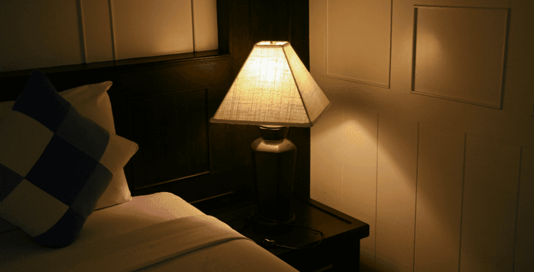 ホテルや旅館の客室では過度に明るい照明が避けられ、優しい照明が採用されます。
