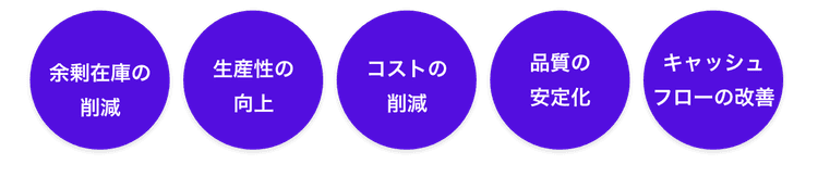 ここでは在庫管理の目的として、「余剰在庫の削減」「生産性の向上」「コストの削減」「品質の安定化」「キャッシュフローの改善」の5つをご紹介します。
