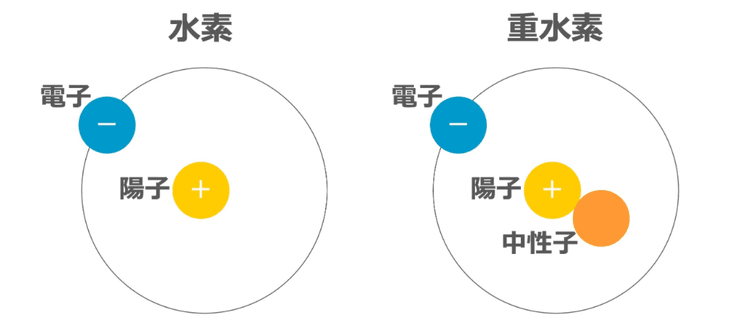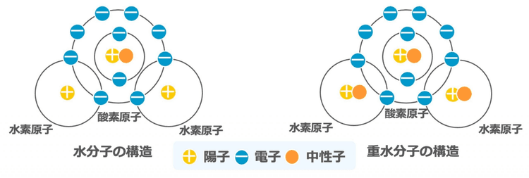 通常の水は酸素原子と水素原子から構成されますが、水素原子の代わりに同位体である重水素原子が酸素原子と結合することで重水となります。