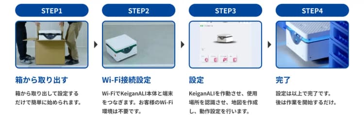 KeiganALIは簡単に操作・設定ができるため、箱から取り出したその日から使用することができます。