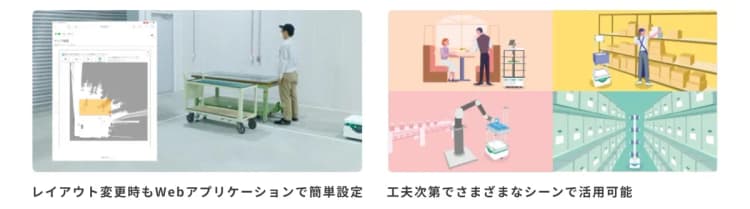 セットアップや設定変更は、Webアプリを用いてお客様ご自身で行うことができるため、レイアウトや作業内容の変更にも迅速に対応できます。