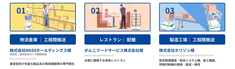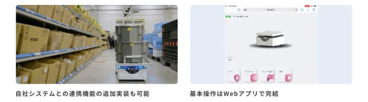 APIを公開しているため、さまざまなシステムとの連携が可能です。製造ラインでの協働ロボットと連携すれば、部品の搬送とピッキング作業などを自動化することができます。