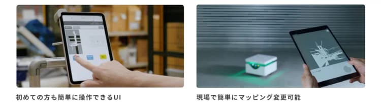 マップの作成から自律移動までがとにかく簡単。地図やタスクの設定もWebアプリを用いて直感的に行うことができるため、レイアウトや作業内容の変更にも迅速に対応。 初心者でも簡単に設定ができます。