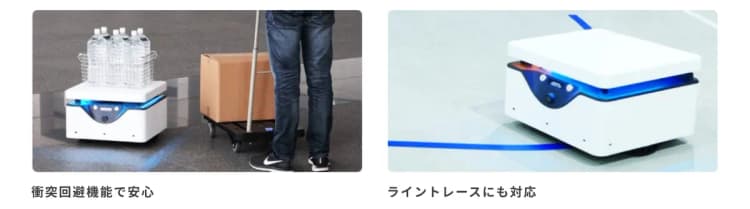 カメラによるライントレース(床面のライン追従)による高精度な走行も可能です。一般的な磁気式テープよりも安価なラインテープを使用するため、現場の初期投資をこれまでにないレベルに抑えることができます。