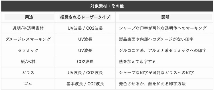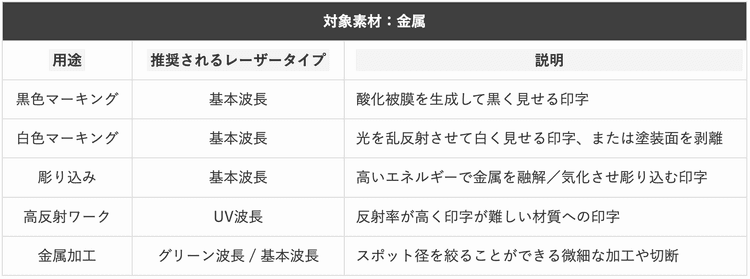 レーザーマーキングは、対象素材や加工の目的によって、最適なレーザータイプを選択することが重要です。