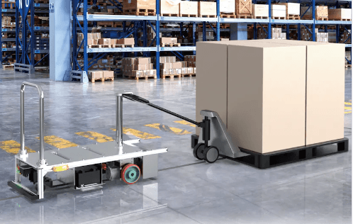 | THOUZER サウザー | DOOG製サウザーに、ワンタッチでハンドパレットとの取り外し可能な牽引ユニットを組み合わせたカスタマイズモデル。3つの走行モードを備え、専用治具を使えば牽引ユニットと簡単に連結できます。アプリでの操作も簡単で、カスタマイズも可能。お客様の要望に合わせた対応が可能です。 |