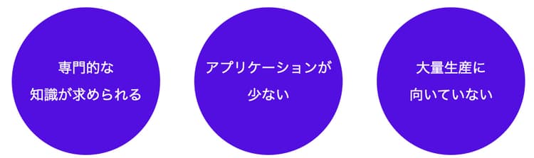 まだそこまで広く一般的に普及していないことから、用途が限定的になっている現状があります。基本的には試作段階での用途がほとんどで、それ以外での実用化はまだ広まっていないようです。