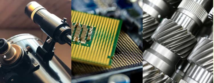 金属膜は様々な工業部品の表面処理に使用されます。チタンや窒化チタンなどの硬質金属膜は工具や機械部品の表面に形成され、耐摩耗性や耐食性を向上させます。