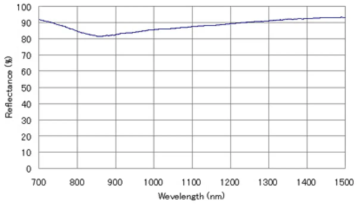 アルミミラーは可視光~赤外域で使用できます。可視光では85%程度、近赤外~赤外域では90%程度の反射率があります。