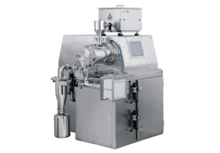 100〜150μm程度の原料を1パスでシングル・サブミクロンまで粉砕する連続式 乾式ビーズミル。