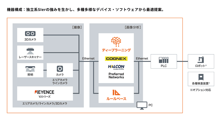 Keyence、Cognex、HALCON、Preferred Networksなどの主要メーカーに対応しています。