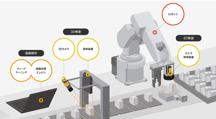 ディープラーニングを活用した先進の画像検査を、厳選したカメラや照明、制御ソフトのワンパッケージで実現します。