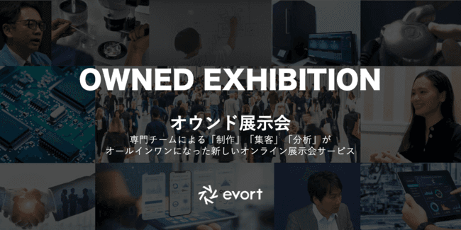 自社にWEB担当者が不在でも、「訴求力の高いコンテンツ制作」「最先端のWEBマーケティングによる集客」「データサイエンティストによる分析と改善」これら全てがリーズナブルに手に入る。そのようなコストパフォーマンスを追求した施策がオンライン展示会evortの「オウンド展示会」です。