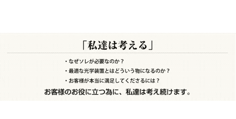 デルタ光器では、光学に関する様々なご要望を具体的な形にするために、コンサルティングから設計、製造までワンストップで行っております。