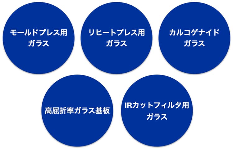 リヒートプレス用ガラスは、熱を再適用することで形状を変更しやすい特性を持っています。この特性により、特定の形状への成形が容易であり、様々なカスタムメイドの光学製品に応用されます。