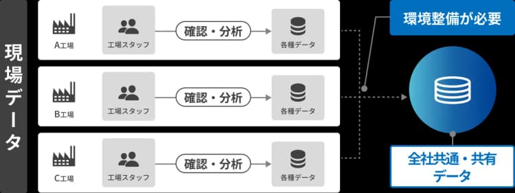 現場ではデータのグラフや稼働状況を見ることができるようになってきています。しかし、データを最大限活用するには、現場だけではなく、全社員が共有・活用できる環境を整備する必要があります。