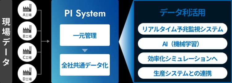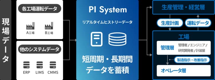PI Systemを導入することにより現場データの一元管理が可能となります。その現場データを全社共通データとして活用できるため、データの活用効果を最大化できます。